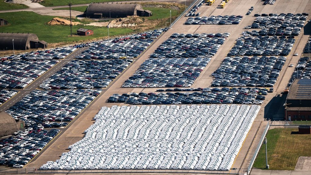 Autók ezreit tárolja szükség parkolókban, többek között elhagyott reptéri leszállópályán. A cég szerint csak arról van szó, hogy kisebb-nagyobb javítások, befejező munkálatok miatt kell átmenetileg a kocsikat bértárolni, illetve némi gondot okoz néhányuk alkalmassá tétele a most bevezetett környezetvédelmi normákhoz.