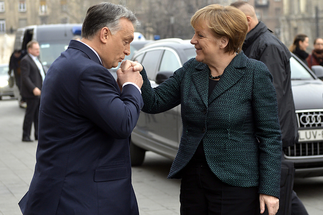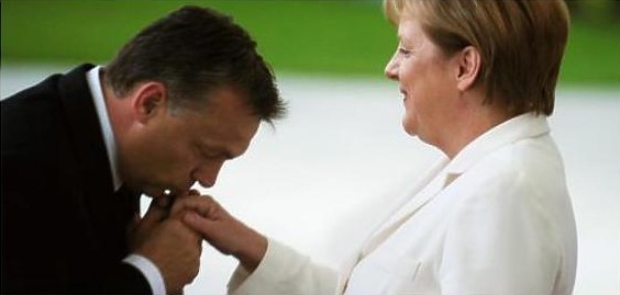 De az már mégiscsak mindennek a teteje, hogy az ég nem szakad le, de tény: Orbán Viktor minden lehetséges alkalmat megragadva, nyilvánosan és görnyedt háttal csókolgatja a Magyar Nemzet szerint „liberálnáci” német kancellár kacsóit. Rendszeresen földig hajol a náci és kommunista Német Szövetségi Köztársaság kormányfője, bizonyos Angela Merkel által képviselt német nagytőke, a Mercedes, az Audi, (Volkswagen) a Bosch és társaik előtt.