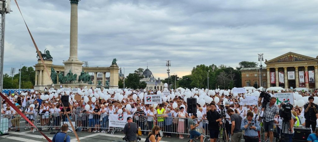 A Hősök terén engedtek utat a frusztrációiknak és ismertették követeléseiket az egészségügyi dolgozók szombati demonstrációjukon, amiért a szakszemélyzet nem kapott az orvosokkal együtt béremelést, továbbá mert megszűnt a közalkalmazotti státuszuk. A felszólalók szerint a szakdolgozók és az orvosok egymás kezét fogva látják el a betegeket, pedig nem egymás kezét kellene fogni, hanem Orbán Viktor tökeit kellene végre megszorongatni.