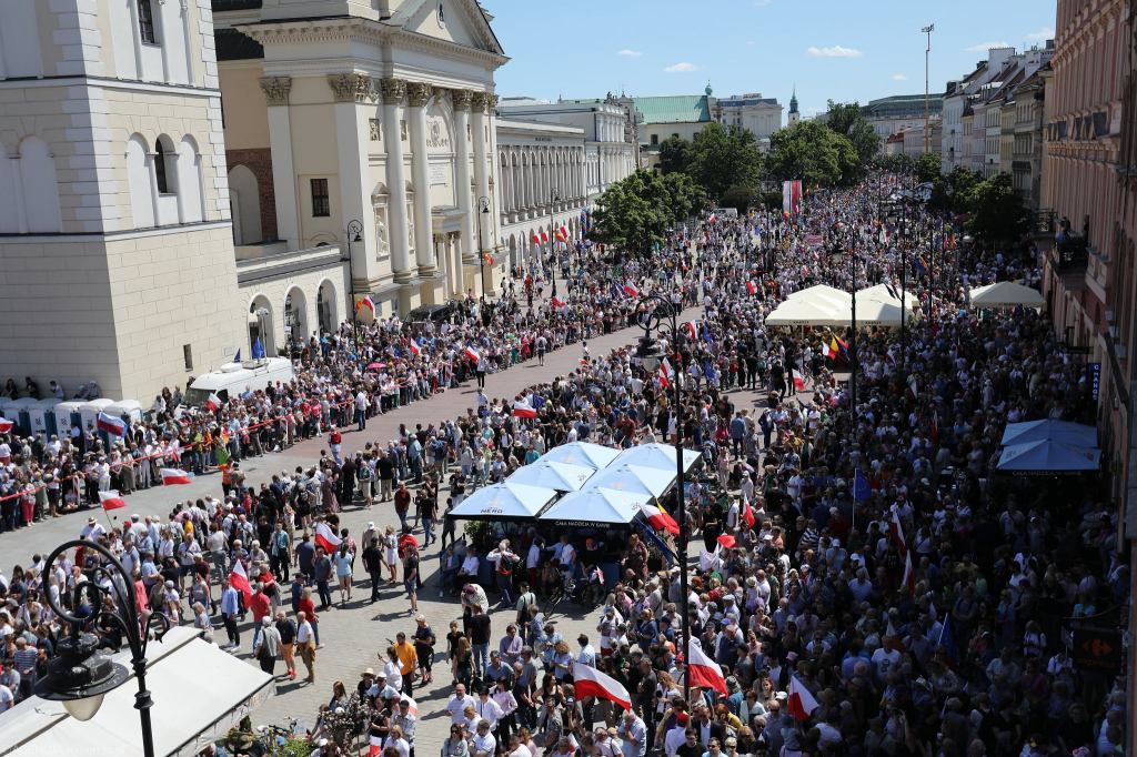 Félmillió lengyel ment vasárnap az utcára Varsóban, hogy tiltakozzon egy új “parlamenti bizottság” felállítását előíró törvény ellen, ami máris kiérdemelte a “lex Tusk” nevet, mert egyetlen célja, hogy az “Oroszország érdekében folytatott tevékenység” ürügyén lehetetlenné tegyék a lengyel ellenzék legnagyobb pártja, az PO (Polgári Platform) elnökének, az Európatanács volt elnökének, a korábbi lengyel kormányfőnek, Donald Tusknak, hogy pártja az idén év végén várható választási győzelme esetén kormányfő lehessen.