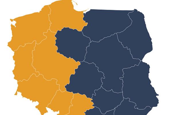 A lengyel térképen a narancs az ellenzék. Nyugat kontra kelet.