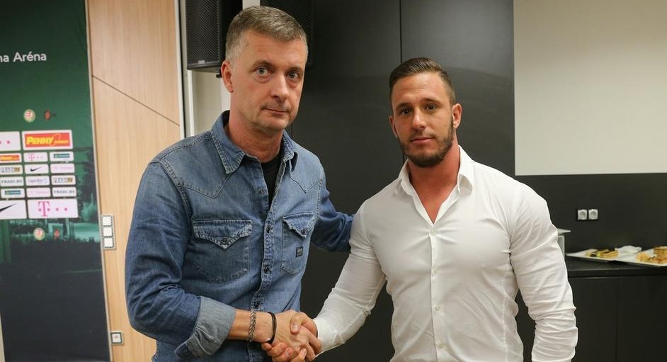 Kubatov Gábor a Fidesz Magyar Polgári Szövetség országos pártigazgatója és alelnöke, országgyűlési képviselő és Hamberger Ádám, a Ferencváros vezérszurkolója