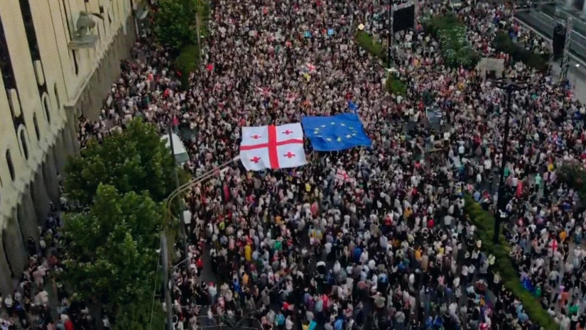 A napok óta tartó kormányellenes társadalmi megmozdulások, tüntetések ellensúlyozására a kormányzó Grúz Álom párt (Magyarországon Fidesznek hívják) nagyszabású, államilag szervezett és finanszírozott ellentüntetést szervezett nyugatellenes jelszavakkal. Ami nálunk Békemenet név alatt fut, ugyancsak nyugatellenes jelszavakkal.